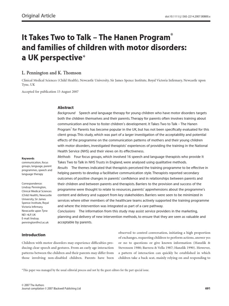 The Hanen Program 'It Takes Two To Talk' - The Developing Child Centre