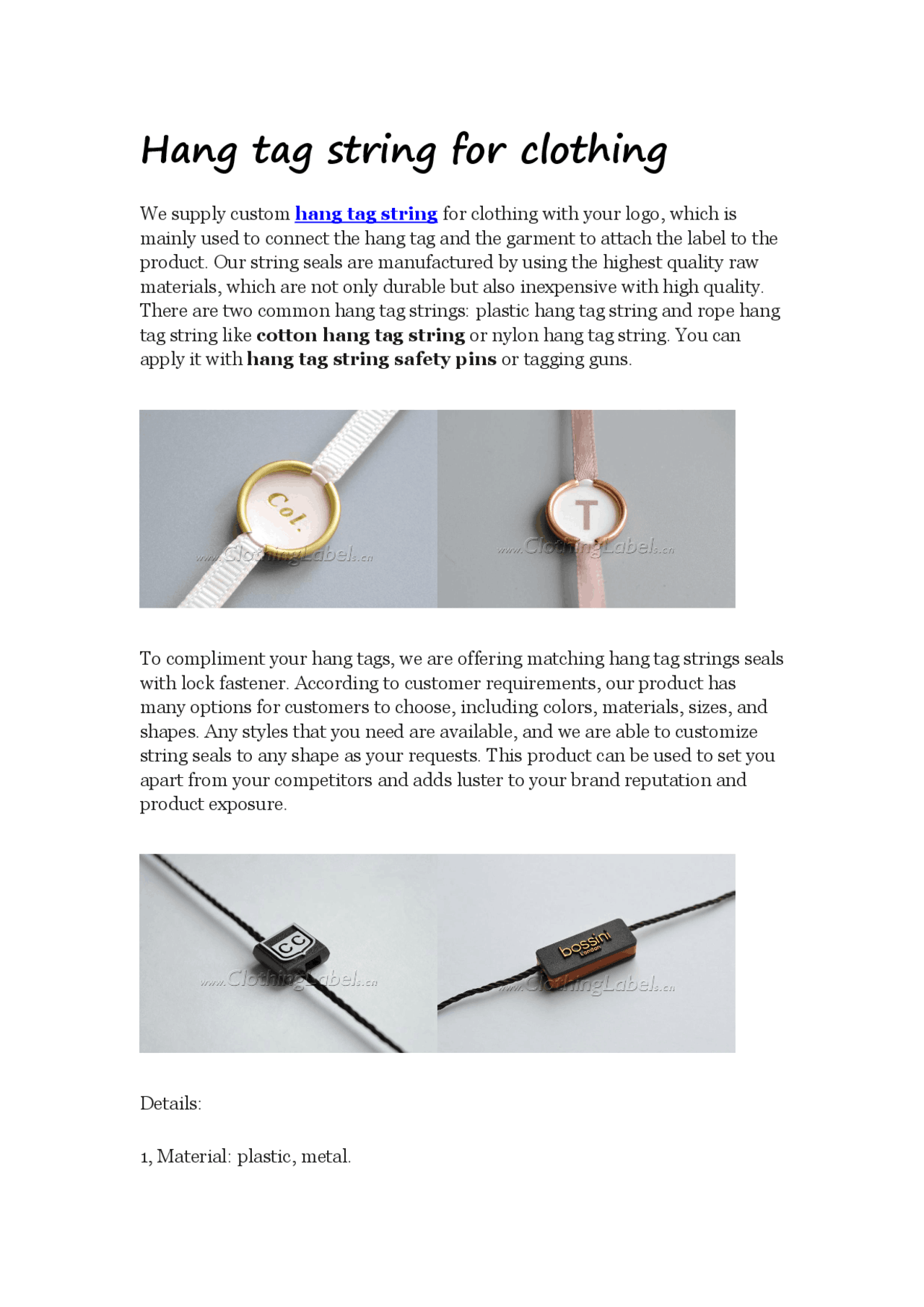 Sale hang tag string for clothing line | ClothingLabels.cn | Custom ...