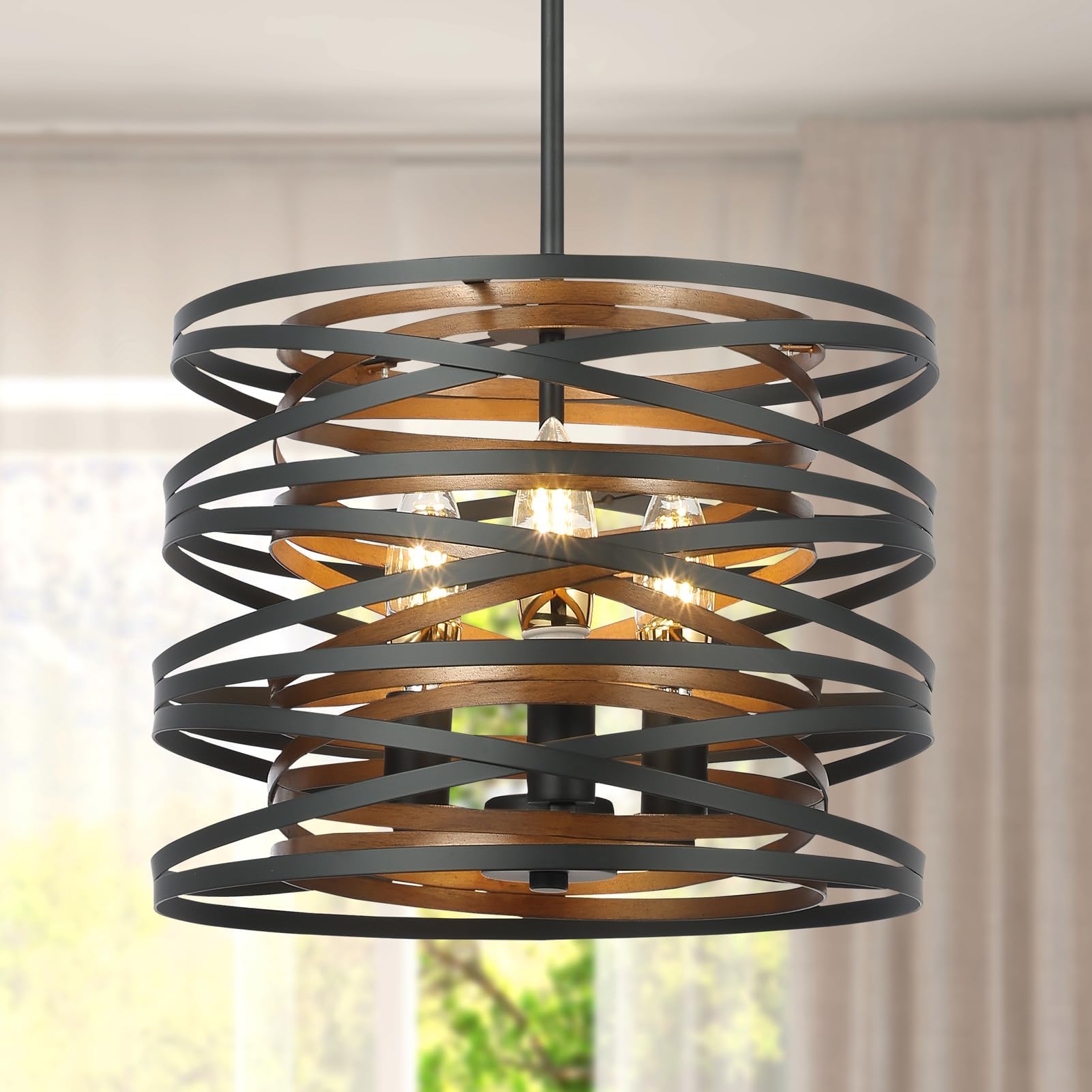 LED Hanging Lamp Dining Table Pendant Lighting Fixture Wood Rustic 40W ...