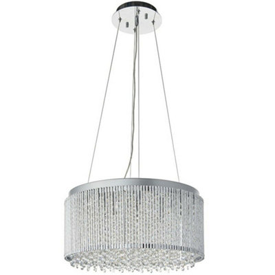 Hanging Ceiling Pendant Light Chrome & K9 Crystal Shade 12 Bulb Large ...