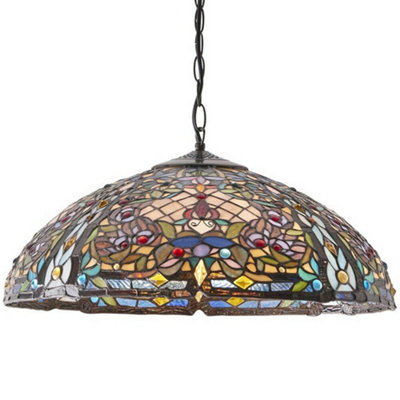 Tiffany Glass Hanging Ceiling Pendant Light Large Bronze Feature Shade ...