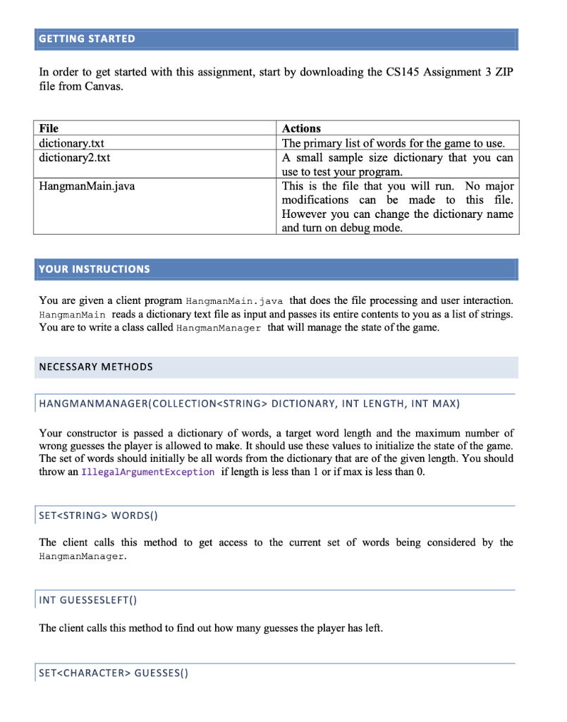 Solved Finishing the Hang Man Game in Java. The game is | Chegg.com