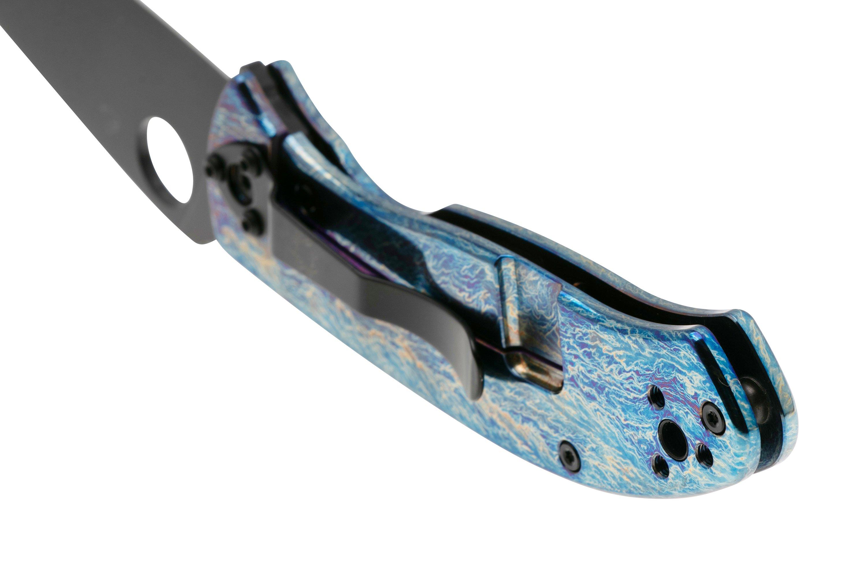 Spyderco Tenacious, Black D2, C122TIBLBKD2P Blue Flamed Titanium ...