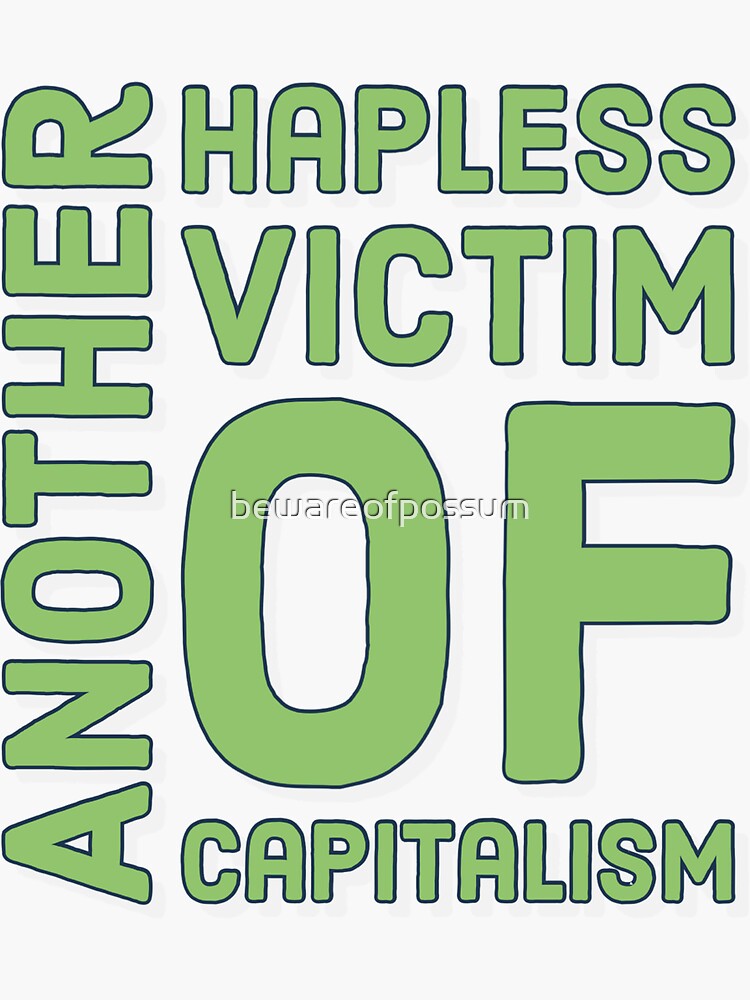 "Another hapless victim of capitalism " Sticker for Sale by ...
