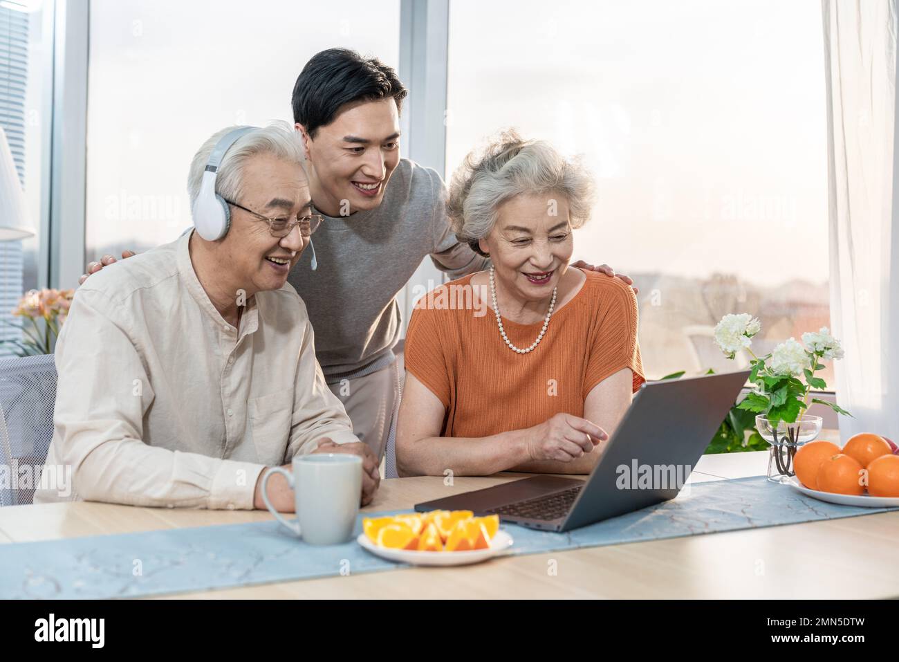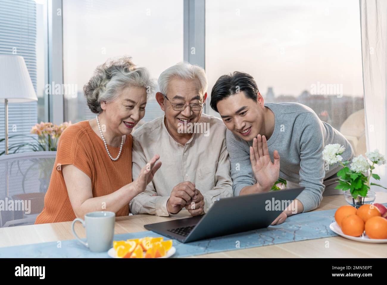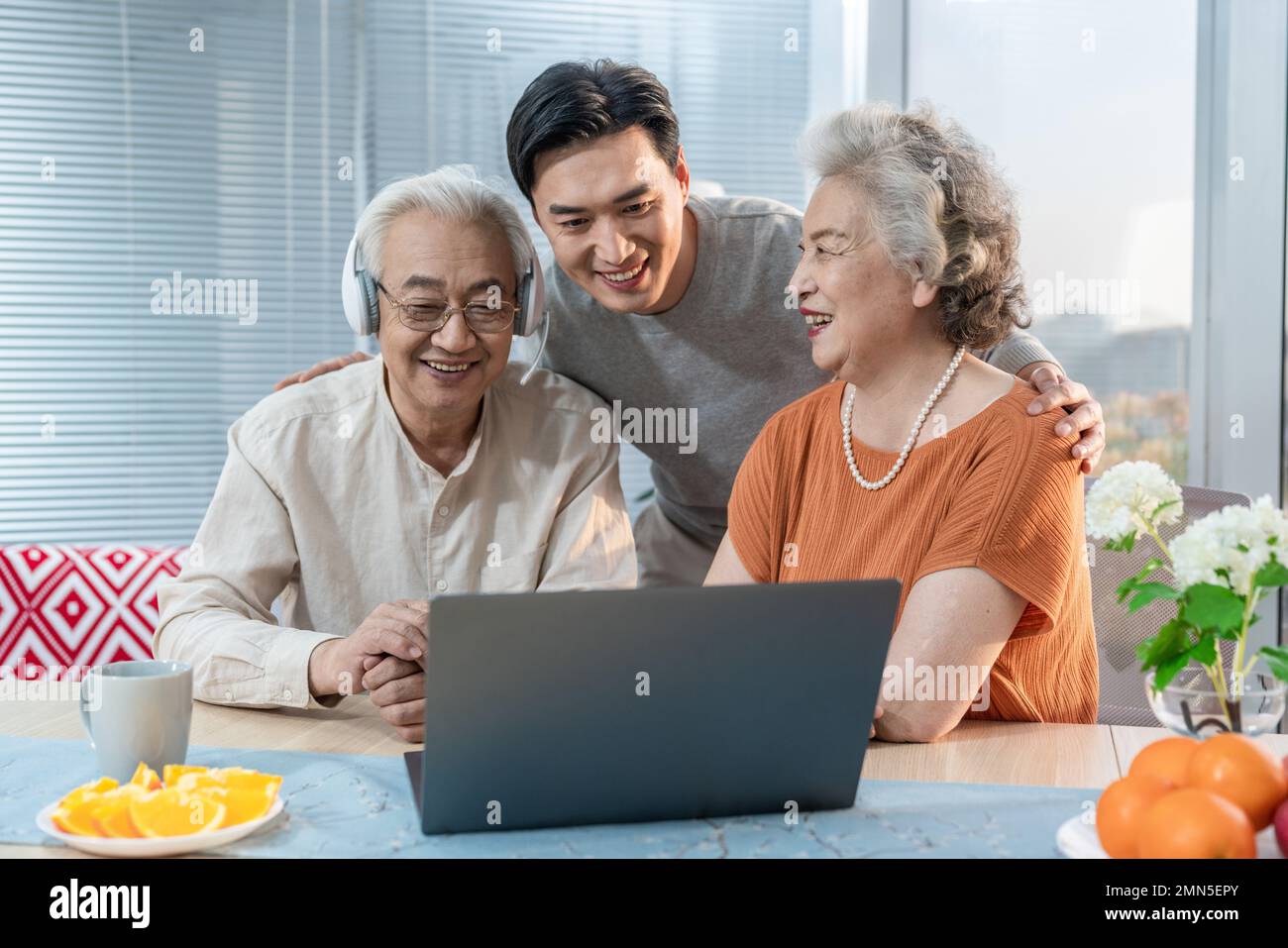 Happy family interacting using laptop Stock Photo - Alamy