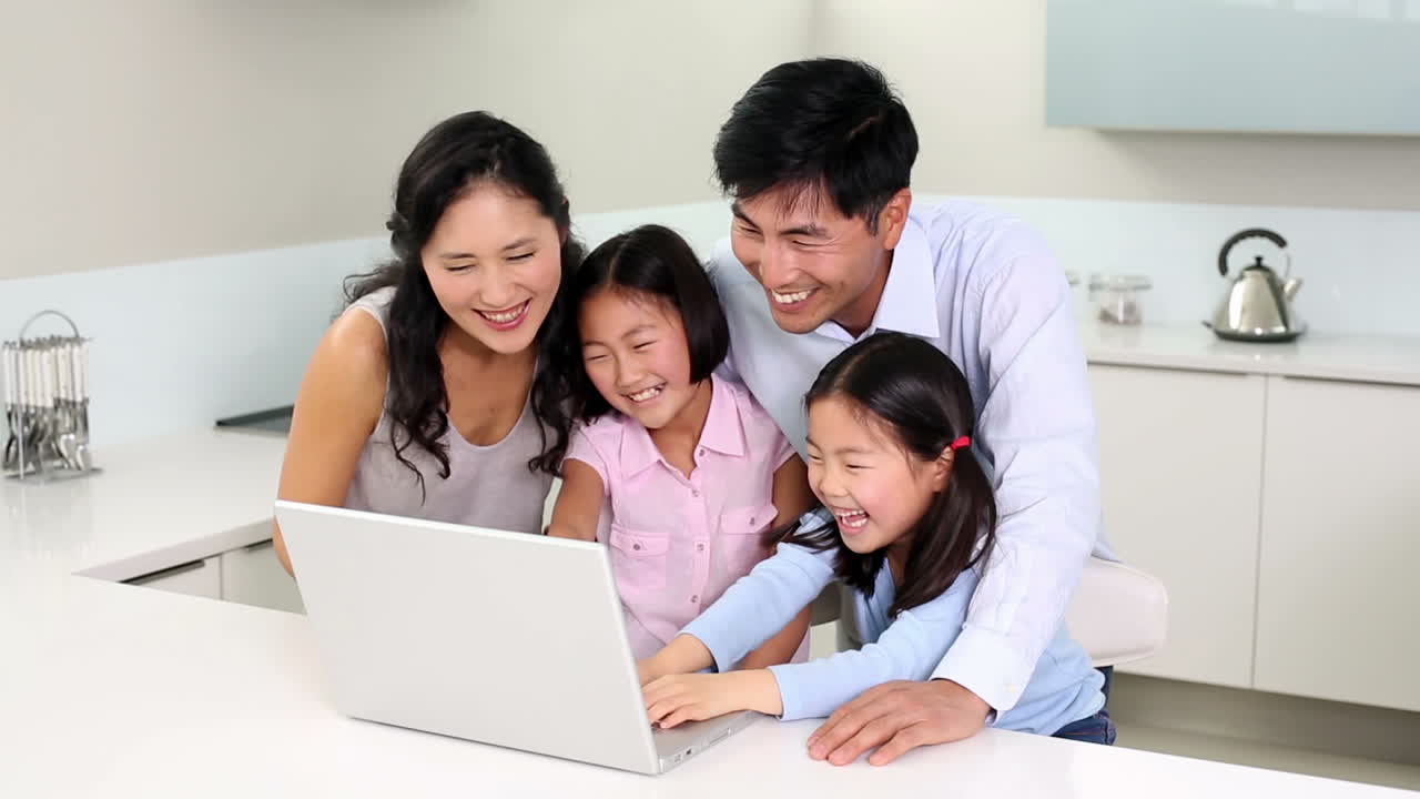 Premium stock video - Happy family using laptop together