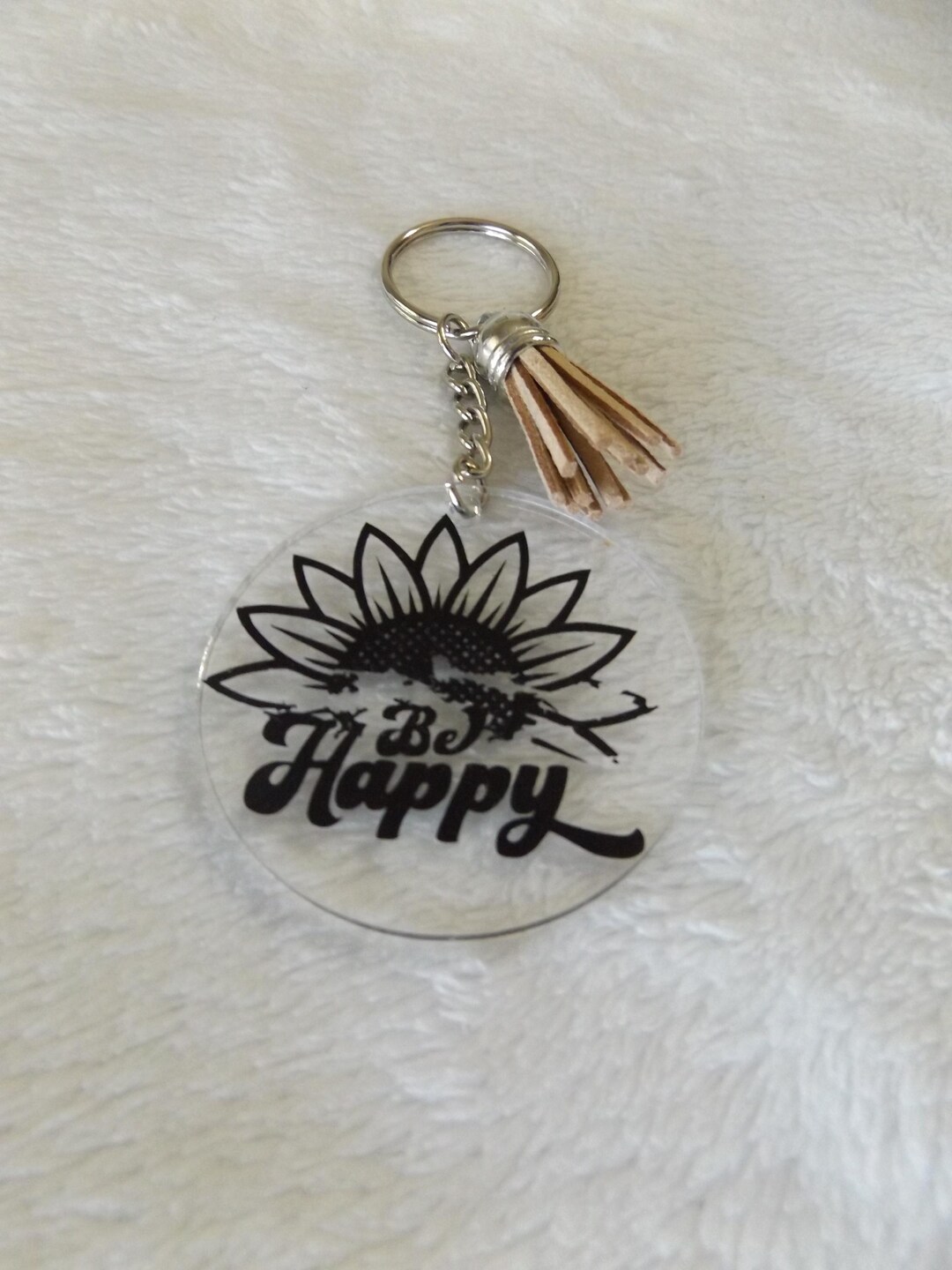 Be Happy Round 2 Inch Acrylic Keychain Black Sunflower - Etsy