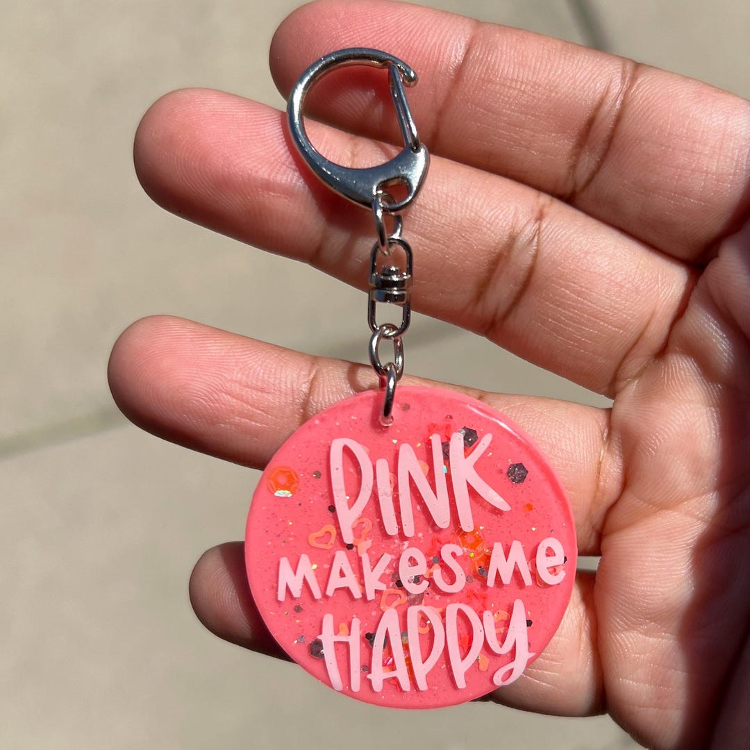 Pink Makes Me Happy Keychain|| Bag Decor|| Pins and Badges|| Pink Gifts ...