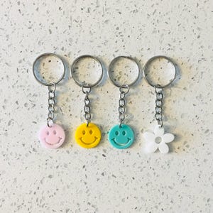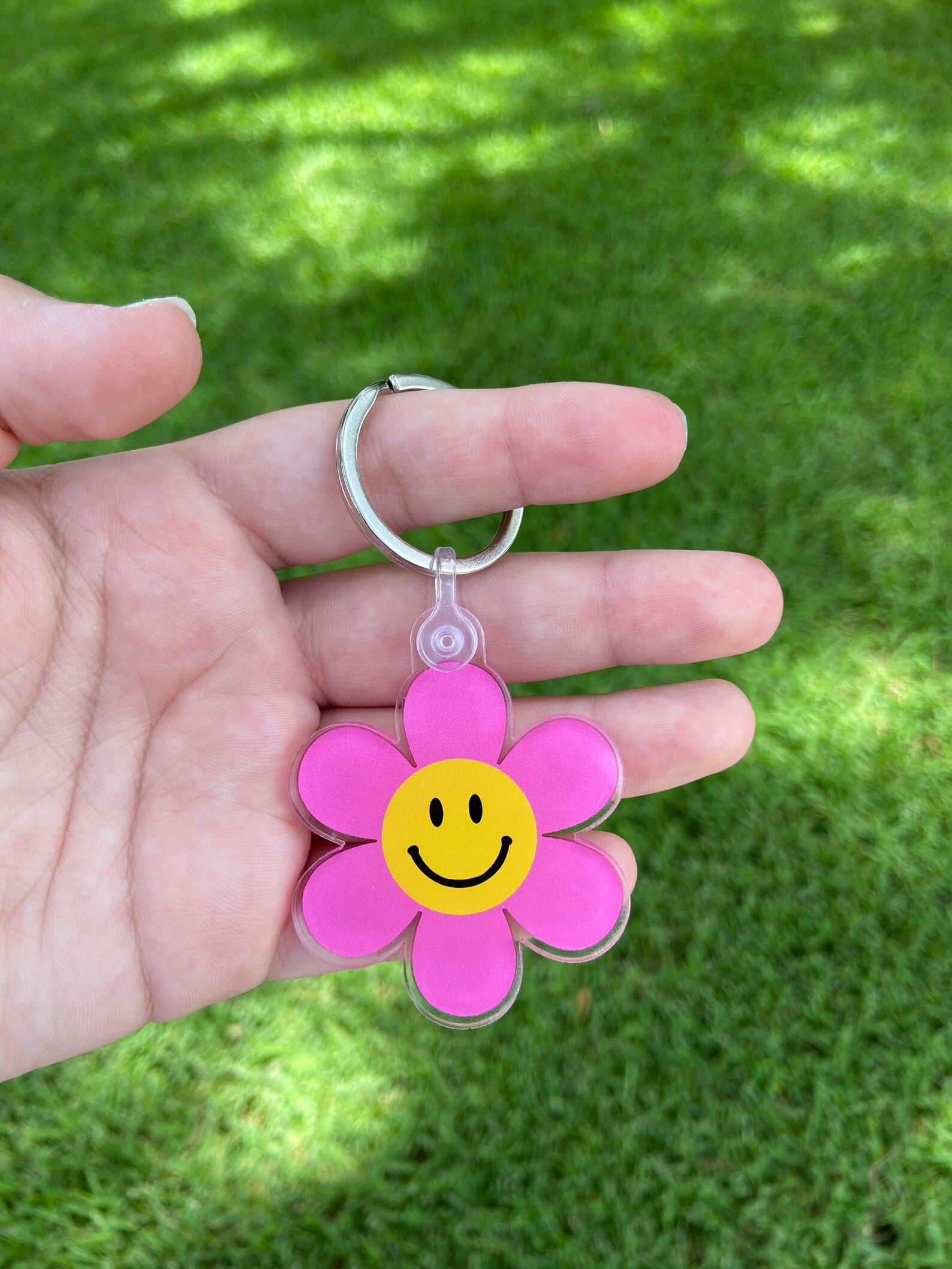 Smiley Face Keychains, Happy Face Keychain, Acrylic Keychains, Flower ...
