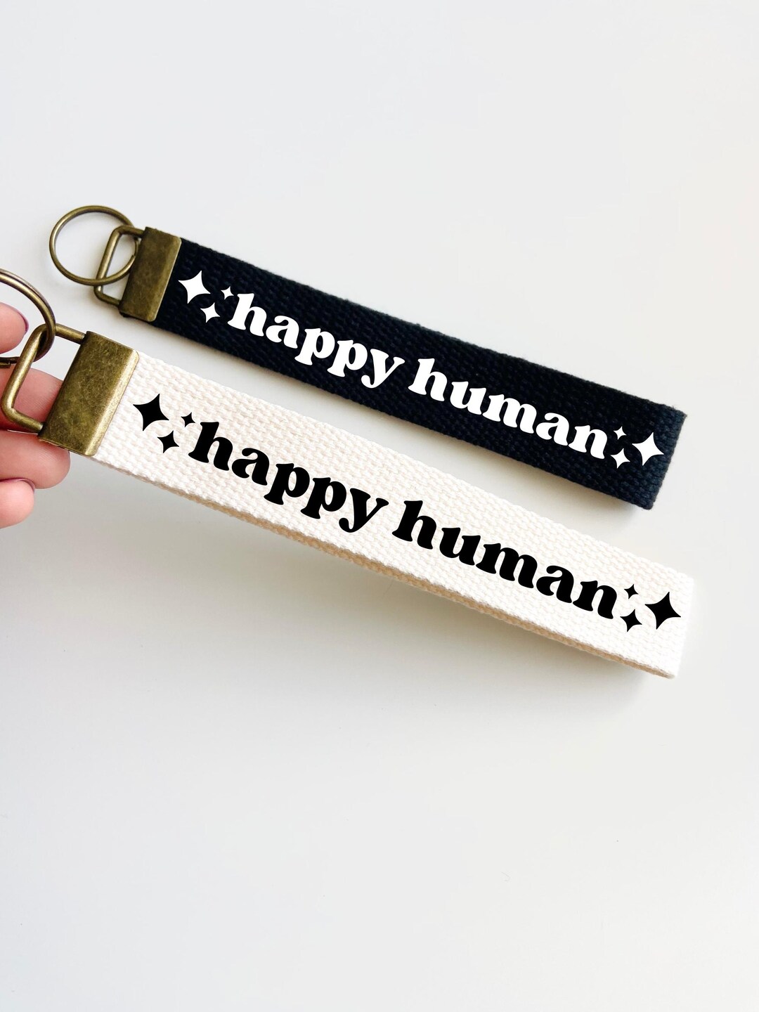 Happy Human Keychain: Cotton Wristlet Strap, Positive Vibes - Etsy