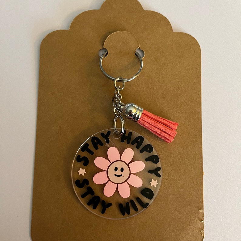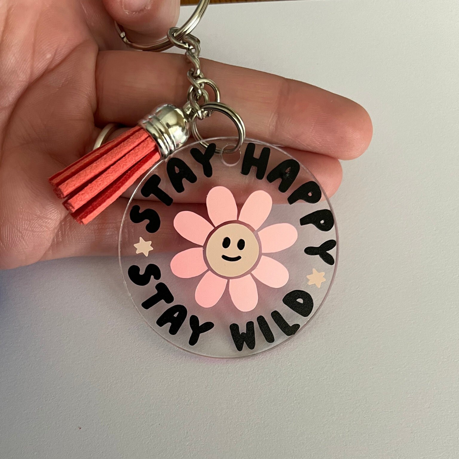 Stay Happy Acrylic Keychain Vinyl Acrylic Keychain Cute Keychain ...