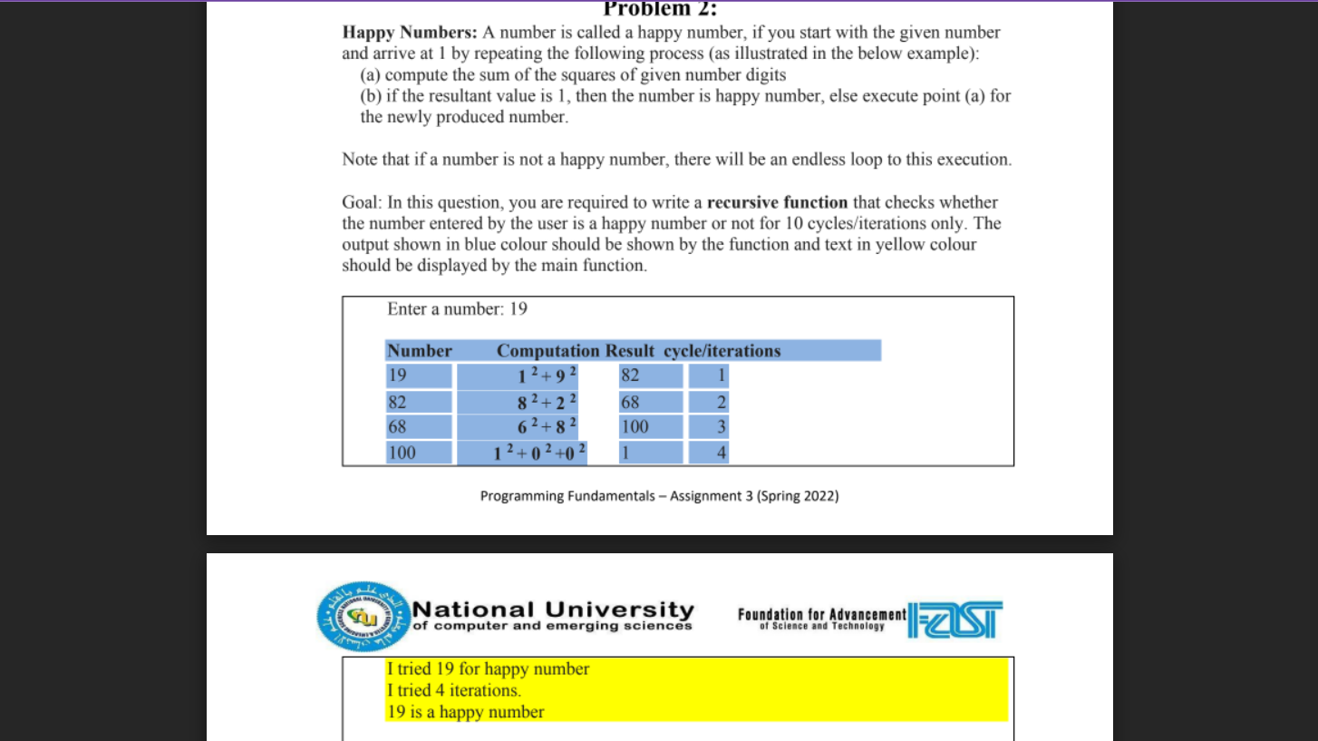 Solved Y Problem 2: Happy Numbers: A number is called a | Chegg.com