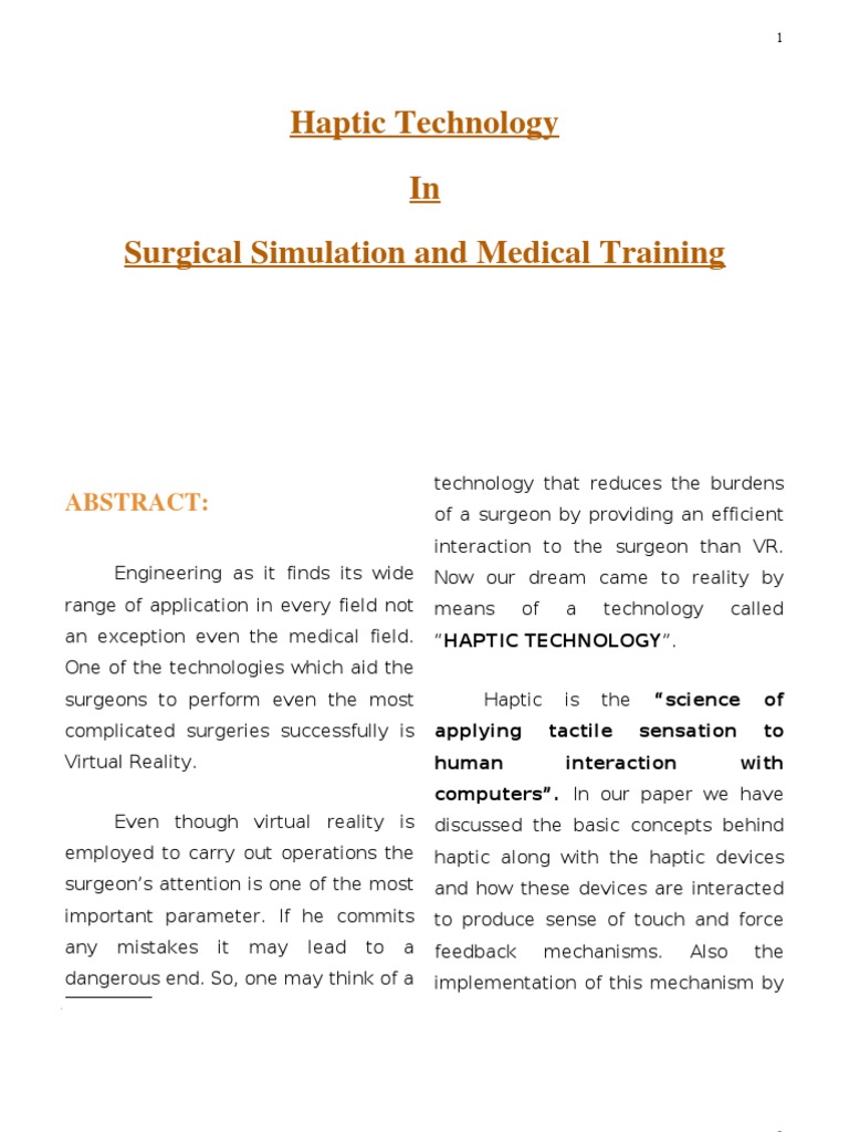 Haptic Technology in Surgical Simulation and Medical Training | PDF ...