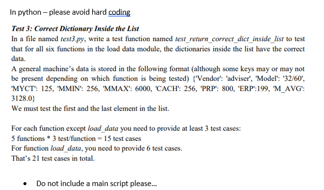 Solved In python - please avoid hard coding Test 3: Correct | Chegg.com