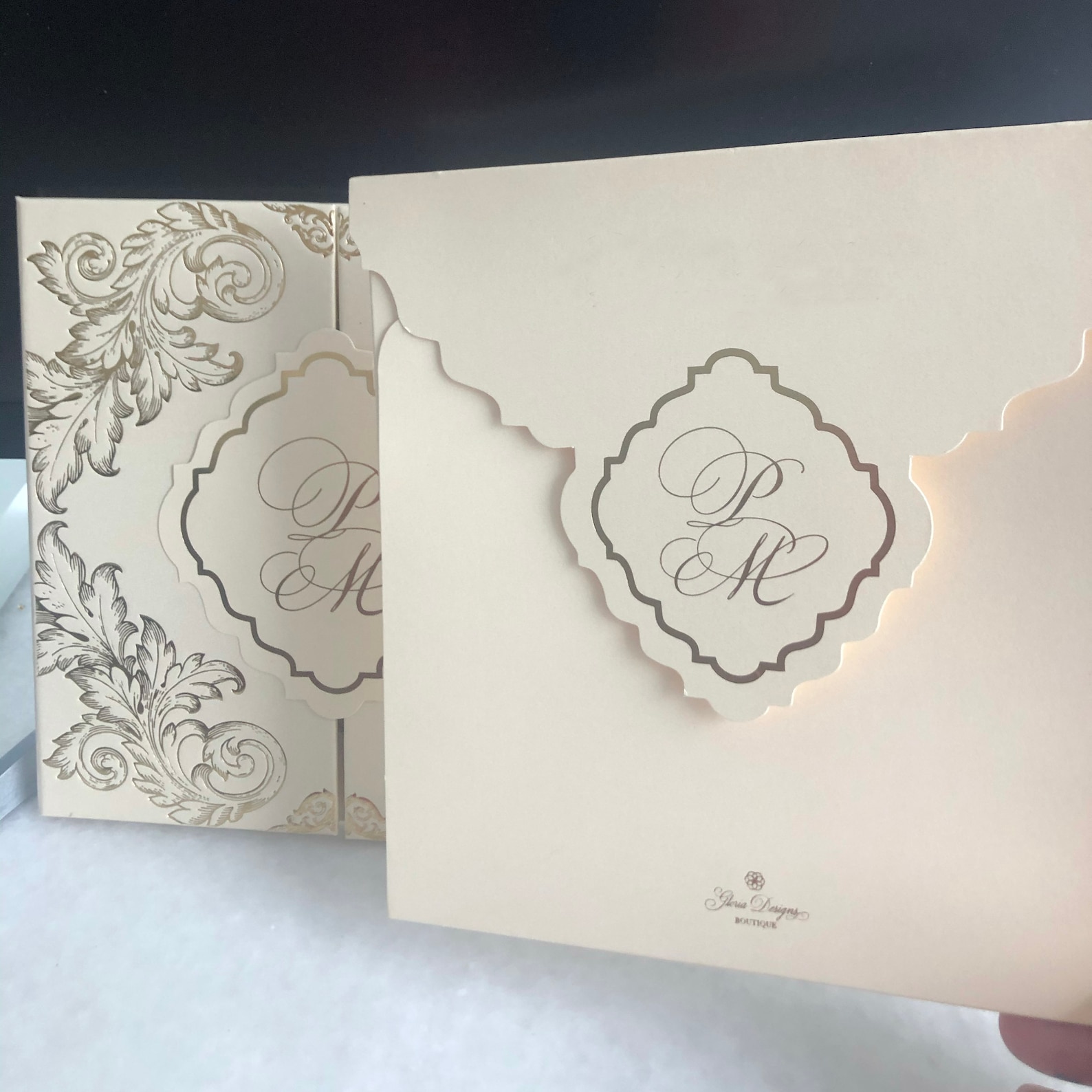 Custom Hard Cover Gatefold Laser Cut Gold Foil Invitation Card with ...