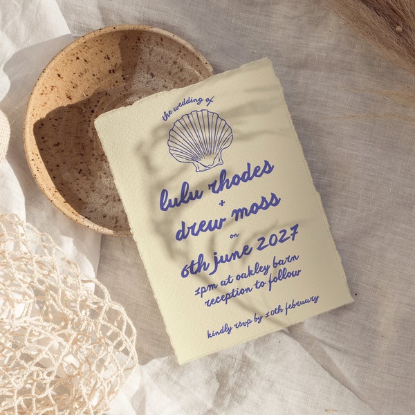 Seashell wedding invitation letterpress hand printed on luxury cotton ...