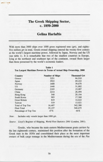 Gelina Harlaftis, “Τhe Greek Shipping Sector c. 1850-2000” στο Lewis R ...