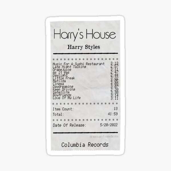 "Harrys House receipt" Sticker for Sale by vandakhoshgelle | Redbubble