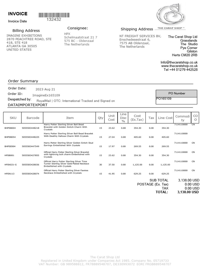 Invoice for Harry Potter Merchandise | PDF | Jewellery | Softlines (Retail)