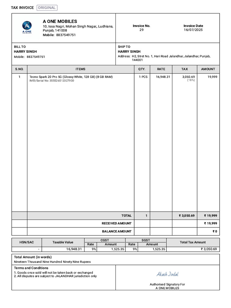 Harry Singh Sales Invoice 29 | PDF | Taxes | Payments