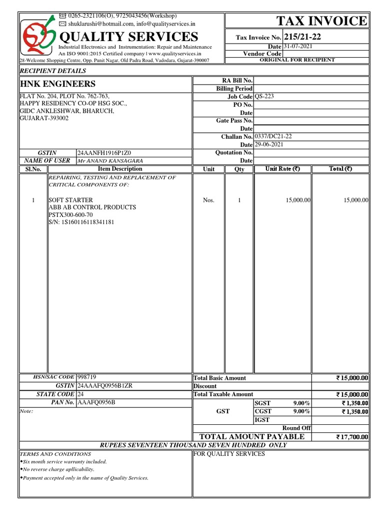 GST Invoice for Repair Services | PDF | Economies | Payments