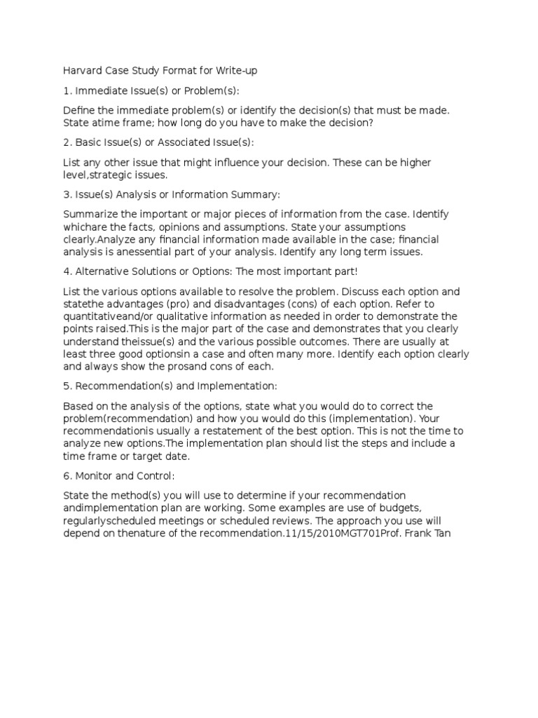 Harvard Case Study Format for Write - Harvard Case Study Format for ...