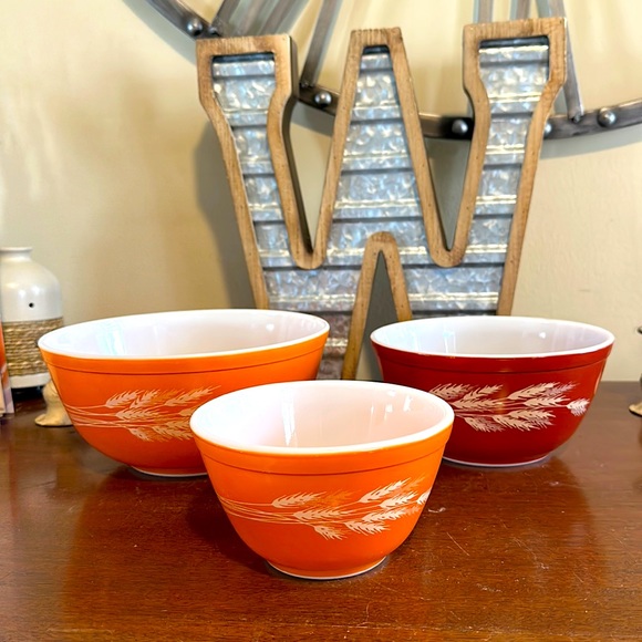 Pyrex | Kitchen | Vintage 3 Piece Pyrex Wheat Pattern On Harvest ...