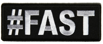 Hashtag Fast Emblem Embroidered Patch Black Twill Background and White ...