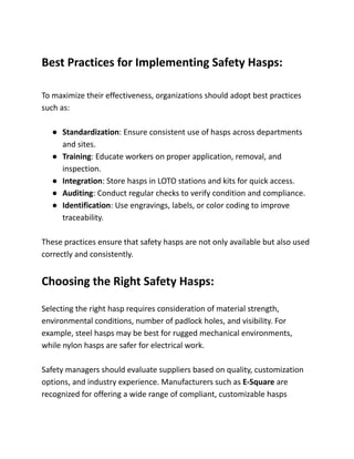Lockout Safety Hasps in Action_ Reinforcing LOTO Protocols | PDF