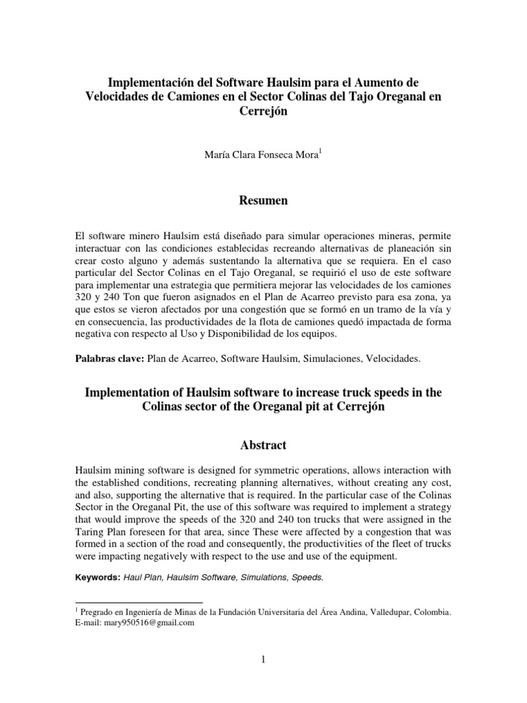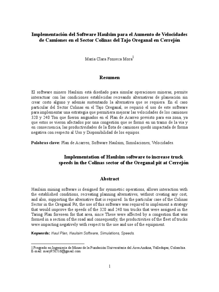 Mejora de Velocidades con Haulsim en Cerrejón | PDF | Simulación | Software