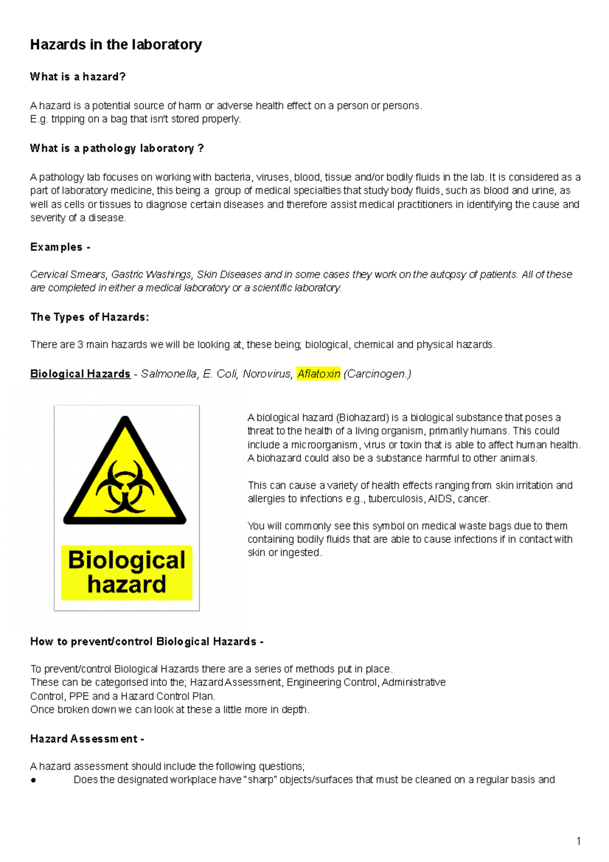Unit 6 - LO1 - Laboratory Hazards and Safety Protocols - Studocu