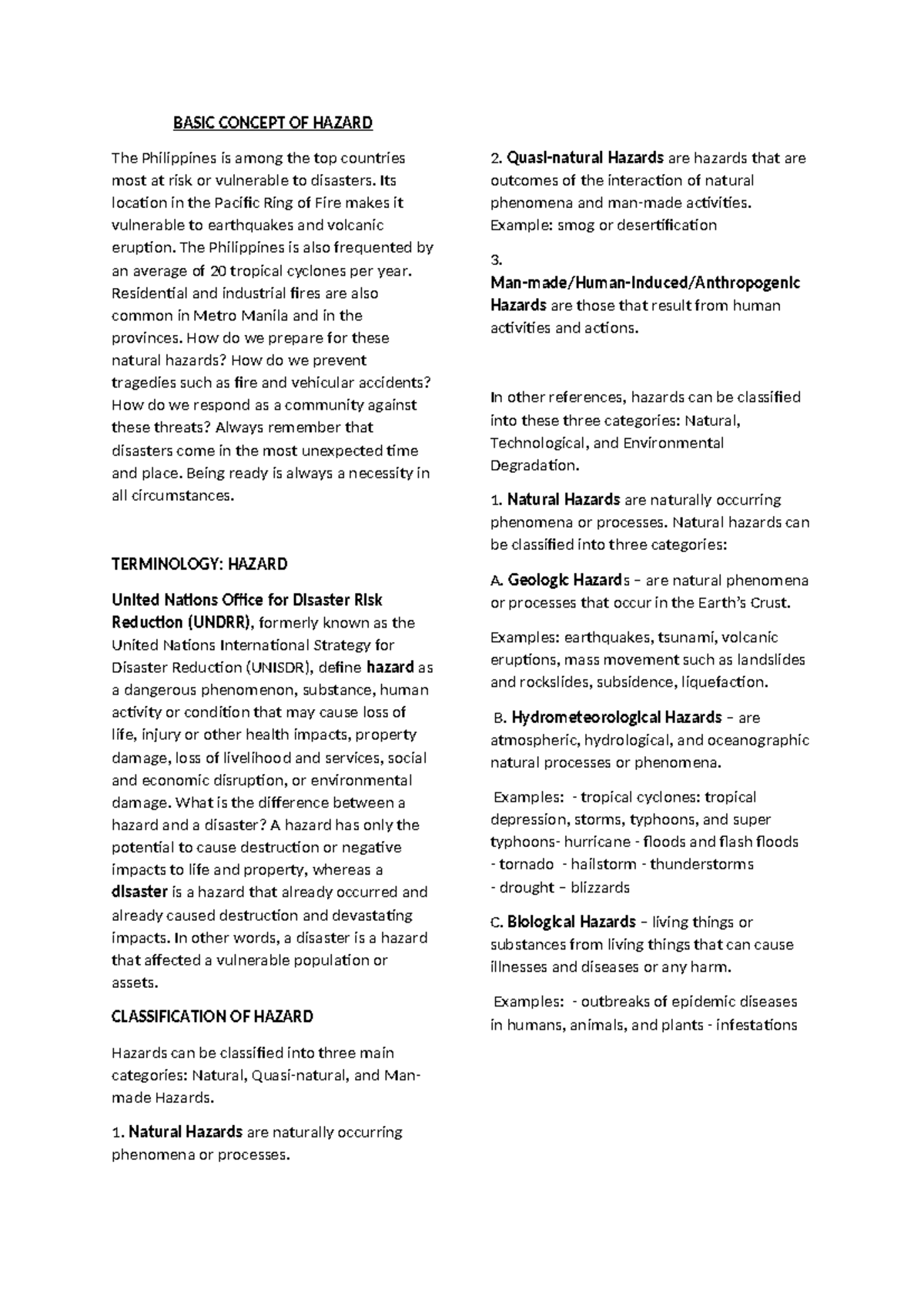 4 DRRR - helpful - BASIC CONCEPT OF HAZARD The Philippines is among the ...