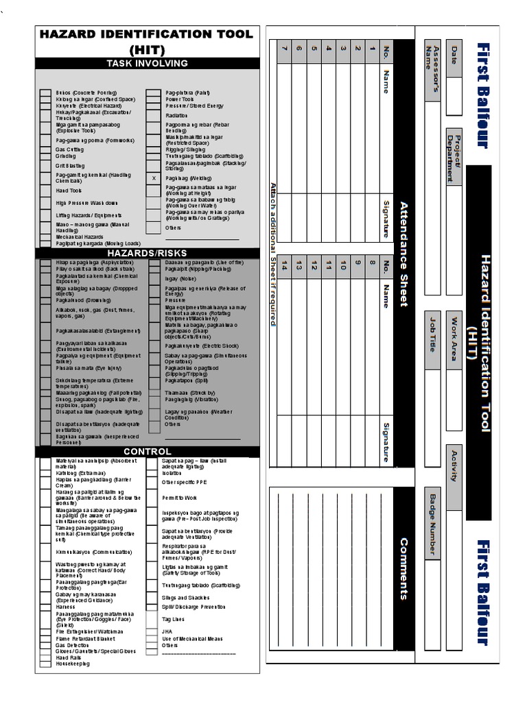 Hazard Indentification Tool (Front & Back Page) (1) Tagalog Version | PDF