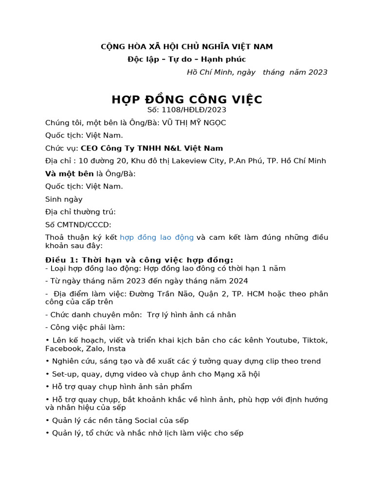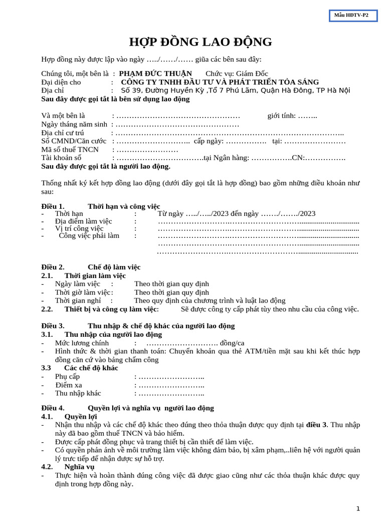 Mau 1.1 HDLD KhongXDThoiHan | PDF