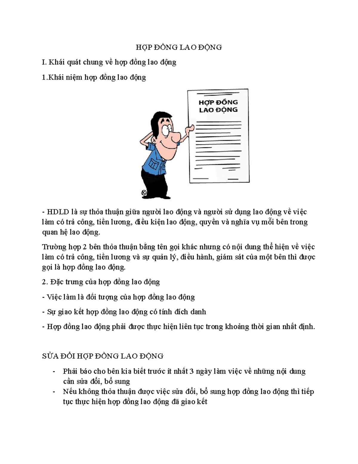 Khái niệm, đặc trưng HDLD - HỢP ĐỒNG LAO ĐỘNG I. Khái quát chung về hợp ...