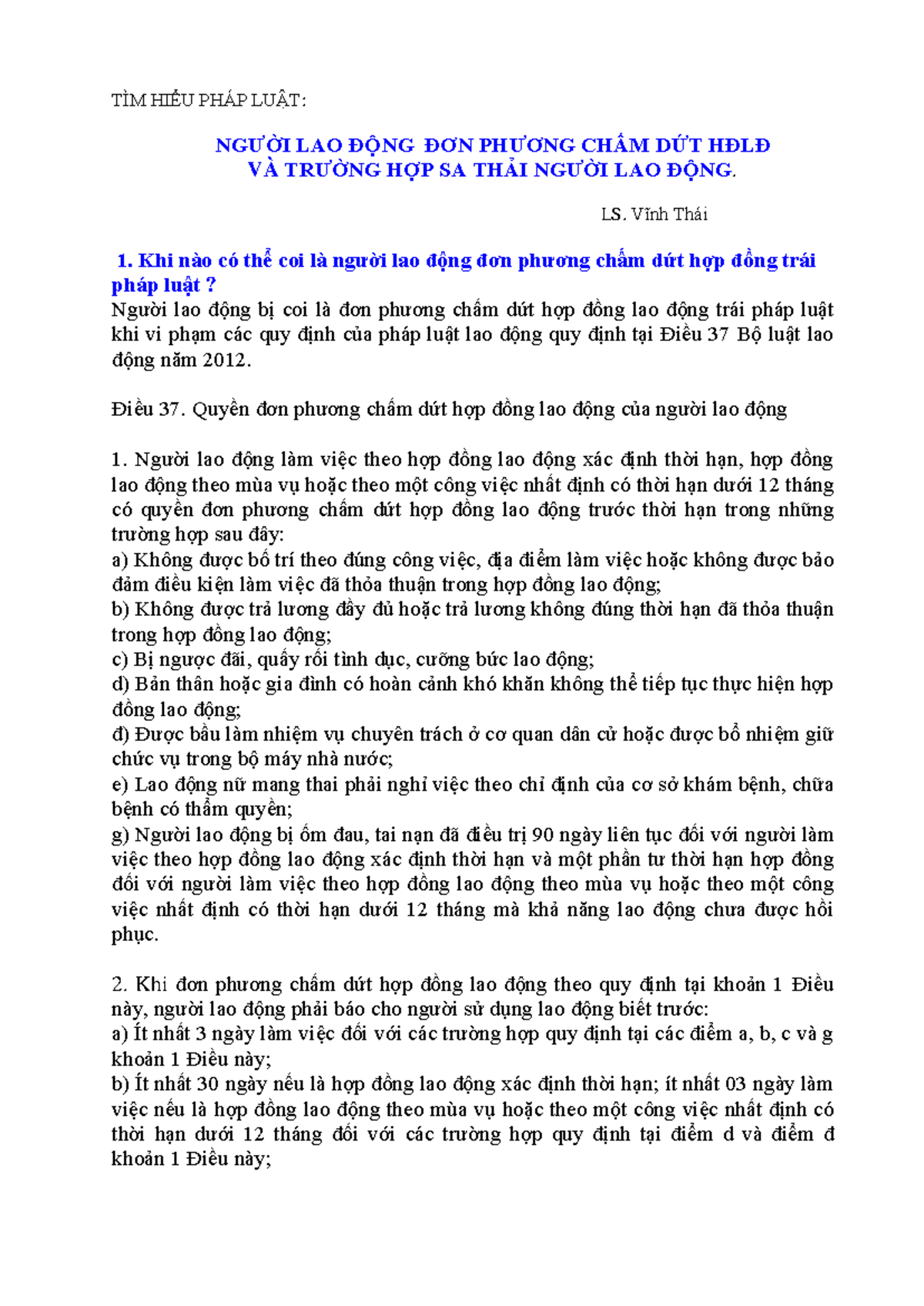 Phan Tich Thuong Thao Cham Dut HDLD - Luong Duc Vinh | PDF