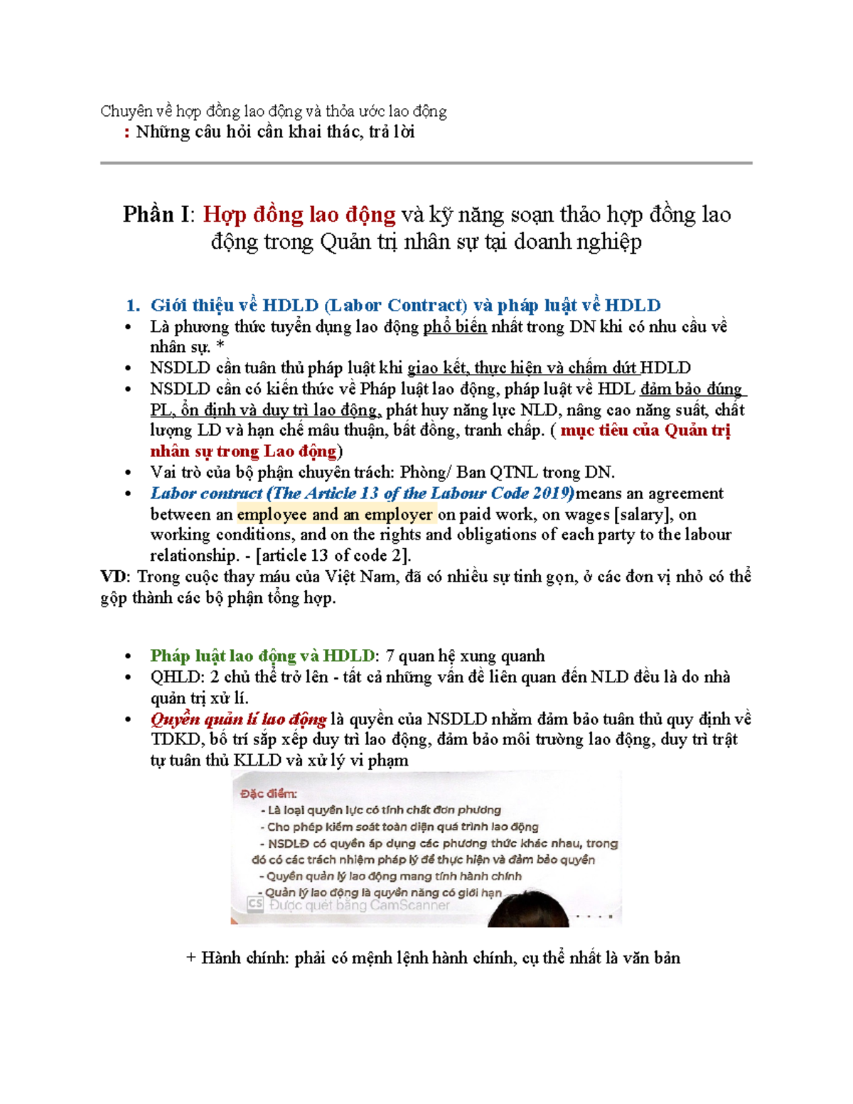 HDLD và Soạn Thảo Hợp Đồng Lao Động: Ghi Chép Quan Trọng - Studocu