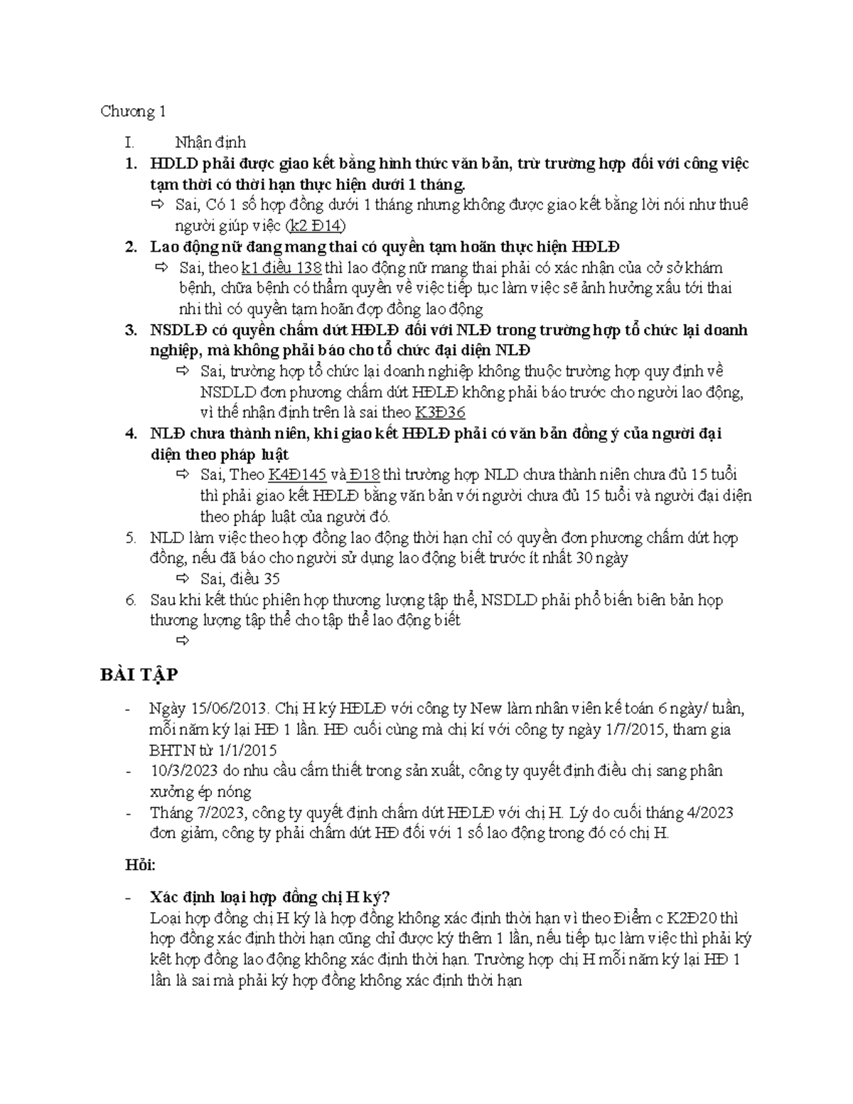 Lao động DD2 - lao động - Chương 1 I. Nhận định 1. HDLD phải được giao ...