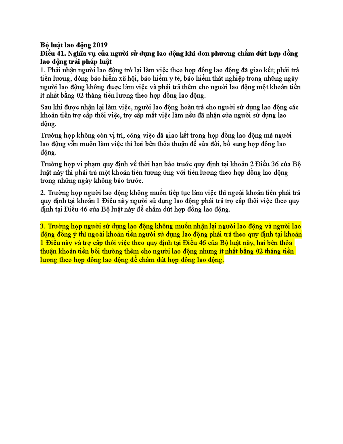 Đơn phương chấm dứt HDLD trái PL - Bộ luật lao động 2019 Điều 41. Nghĩa ...