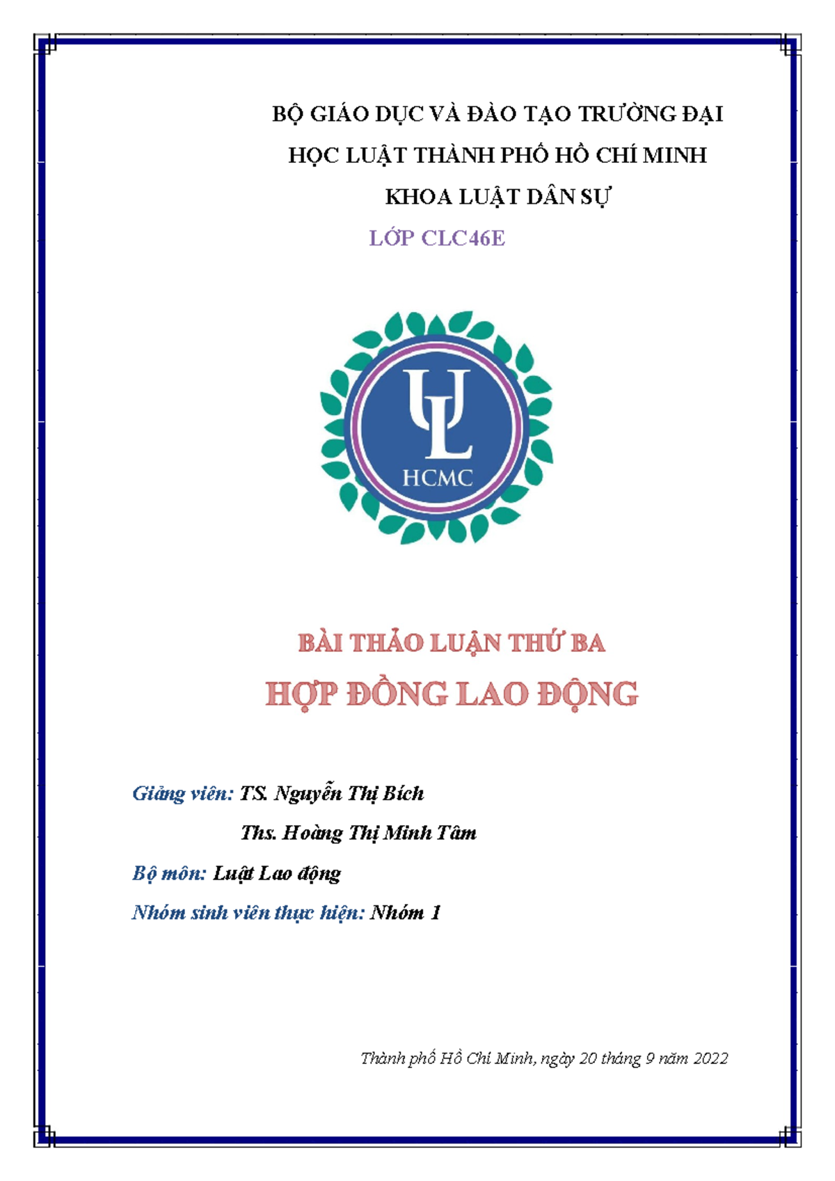 Chuyên ĐỀ BÁO CÁO CHẤM DỨT HĐLĐ - TRƯỜNG ĐẠI HỌC CẦN THƠ KHOA LUẬT HỌC ...
