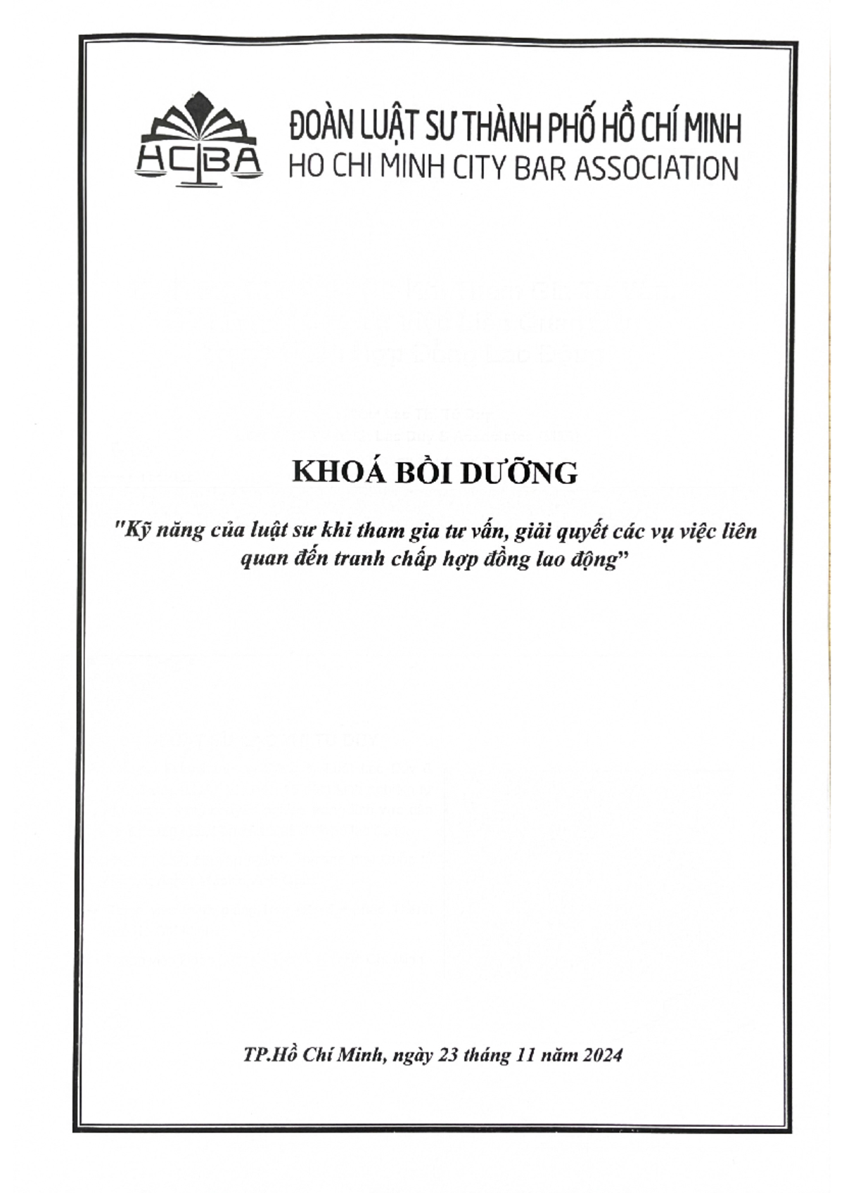 Tai lieu khoa boi duong tranh chap HDLD - DOAN LUÂT SU THÄNH PHO K HO ...