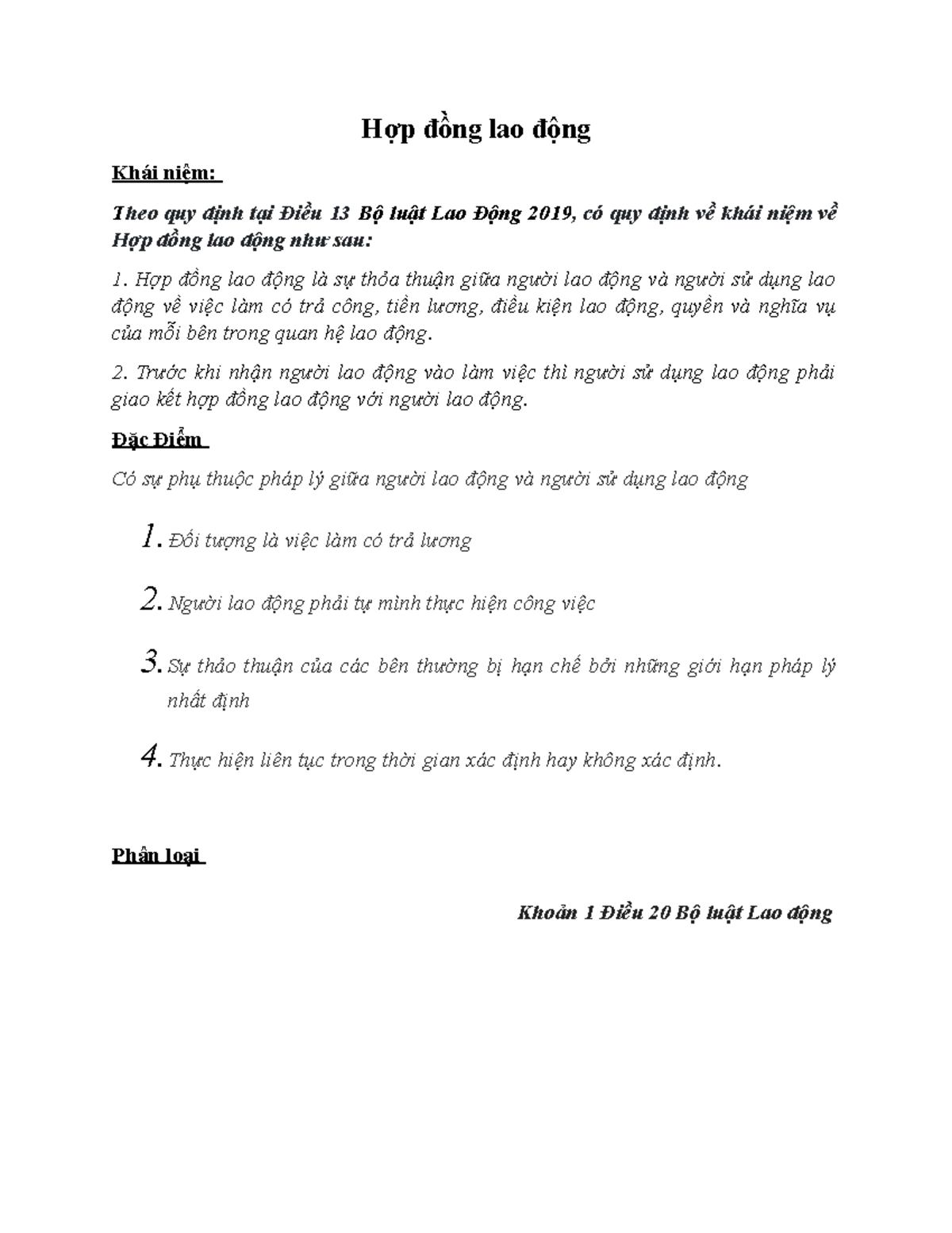 PHÁP LUẬT ĐẠI CƯƠNG ( hợp đồng lao động) - phân loại hợp đồng lao động ...