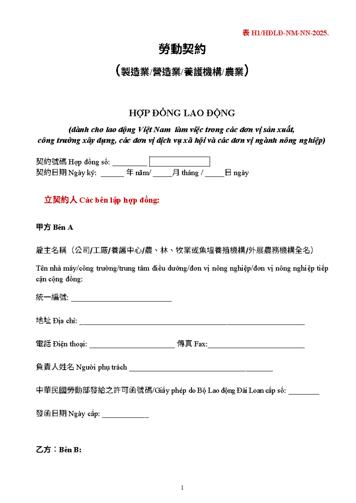 H1-HDLD-NM-NN-2025: Hợp Đồng Lao Động cho Lao Động Việt Nam - Studocu