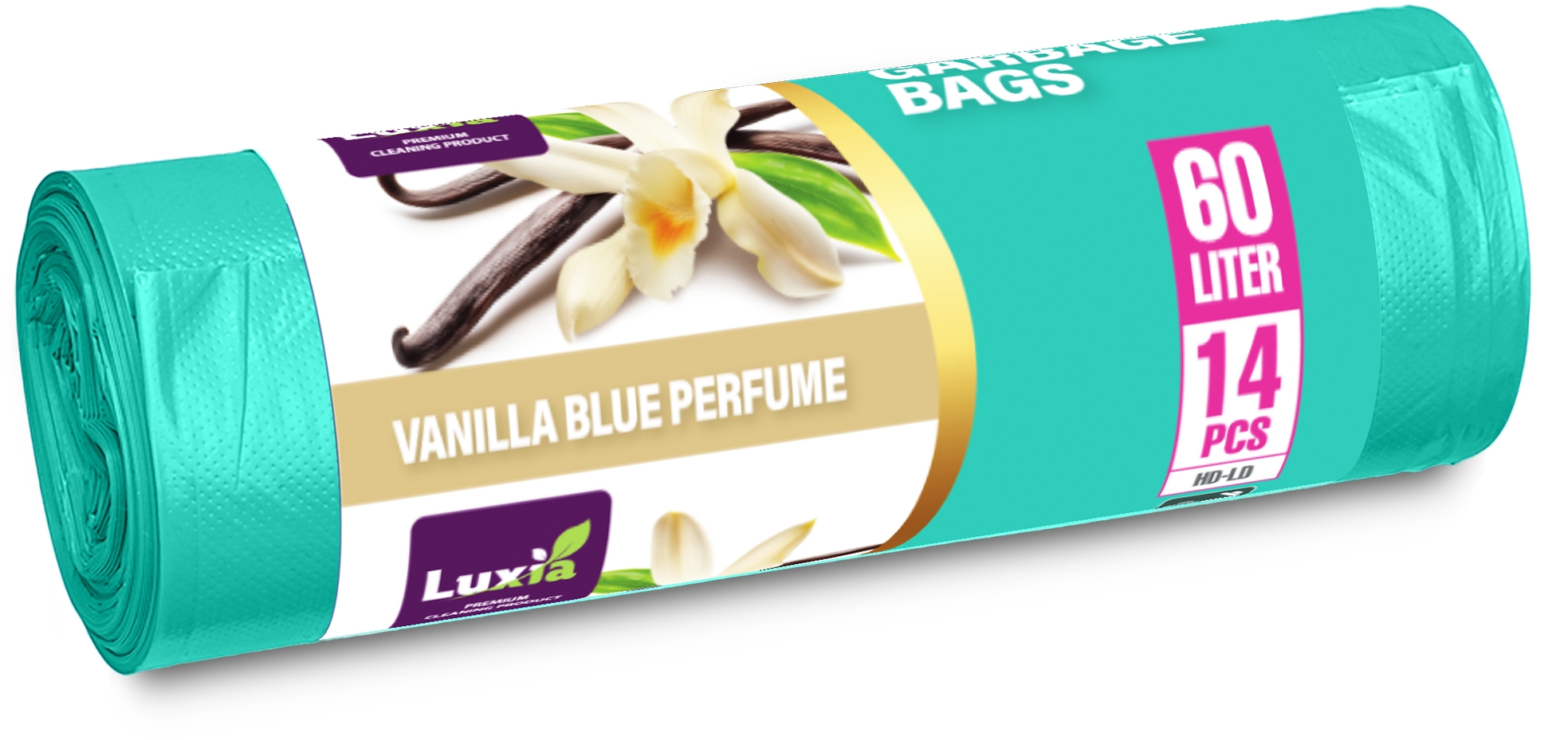 Saci menaj cu urechi Luxia, HDLD, vanilla blue 60L, 14buc/rola - BNB