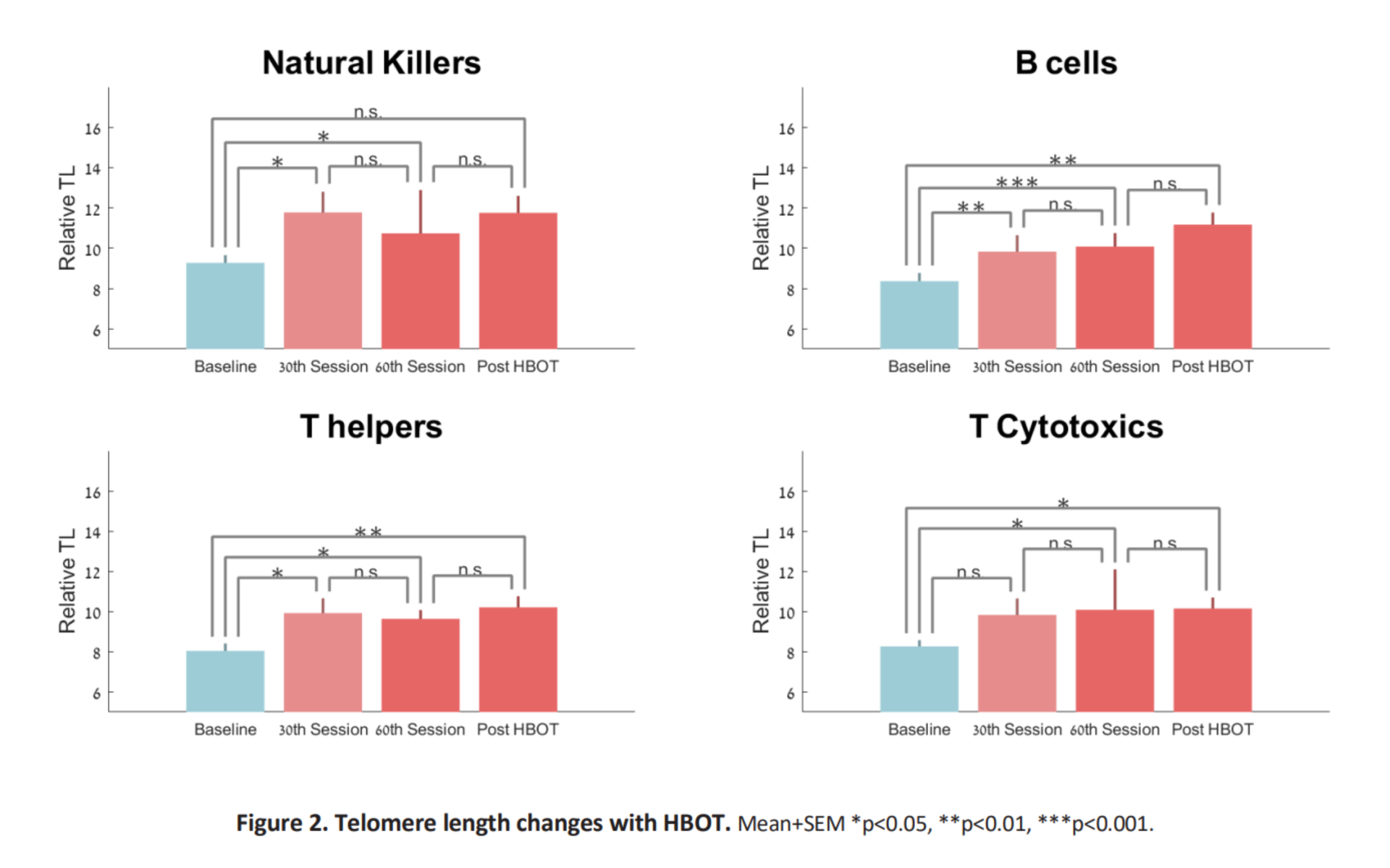 Telomere length changes with HBOT. Mean+SEM *p | Download Scientific ...