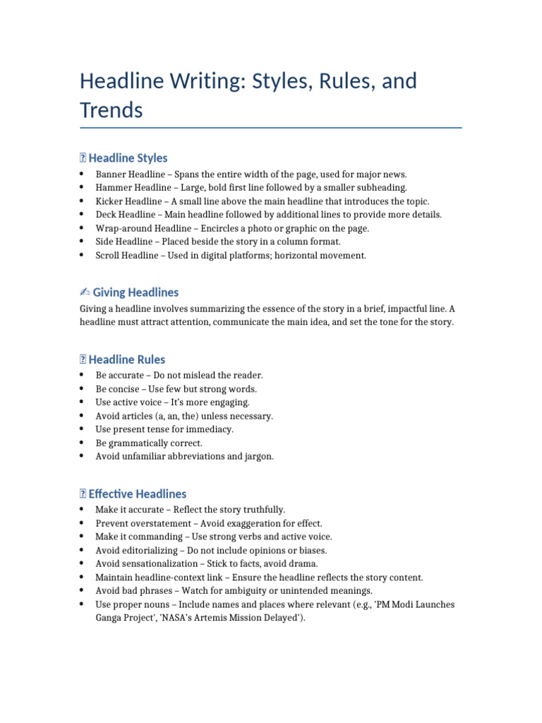 Headline Writing Styles Rules Trends | PDF