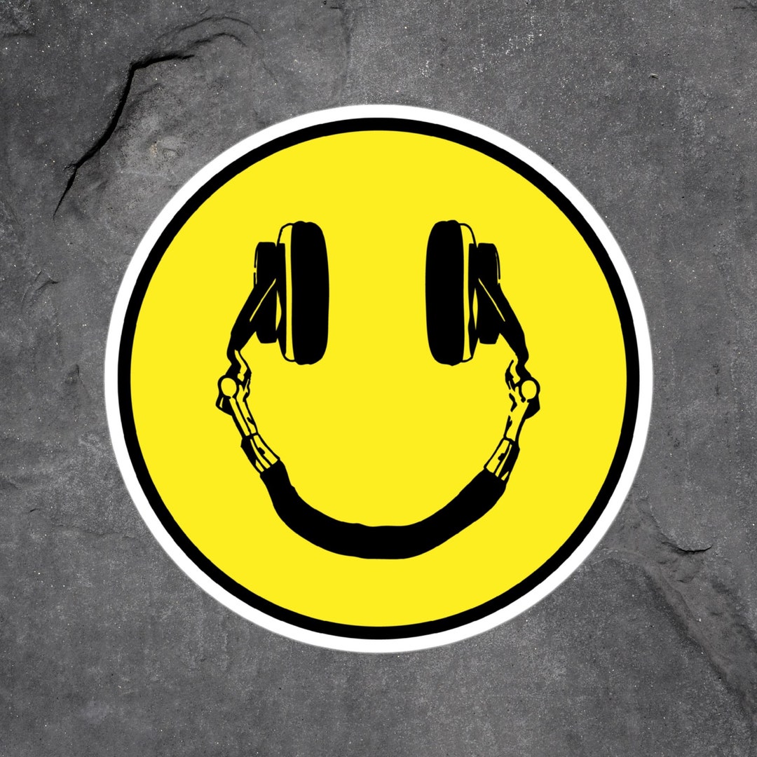 Smiling Headphones Sticker Music Vinyl Sticker Headphone | Etsy