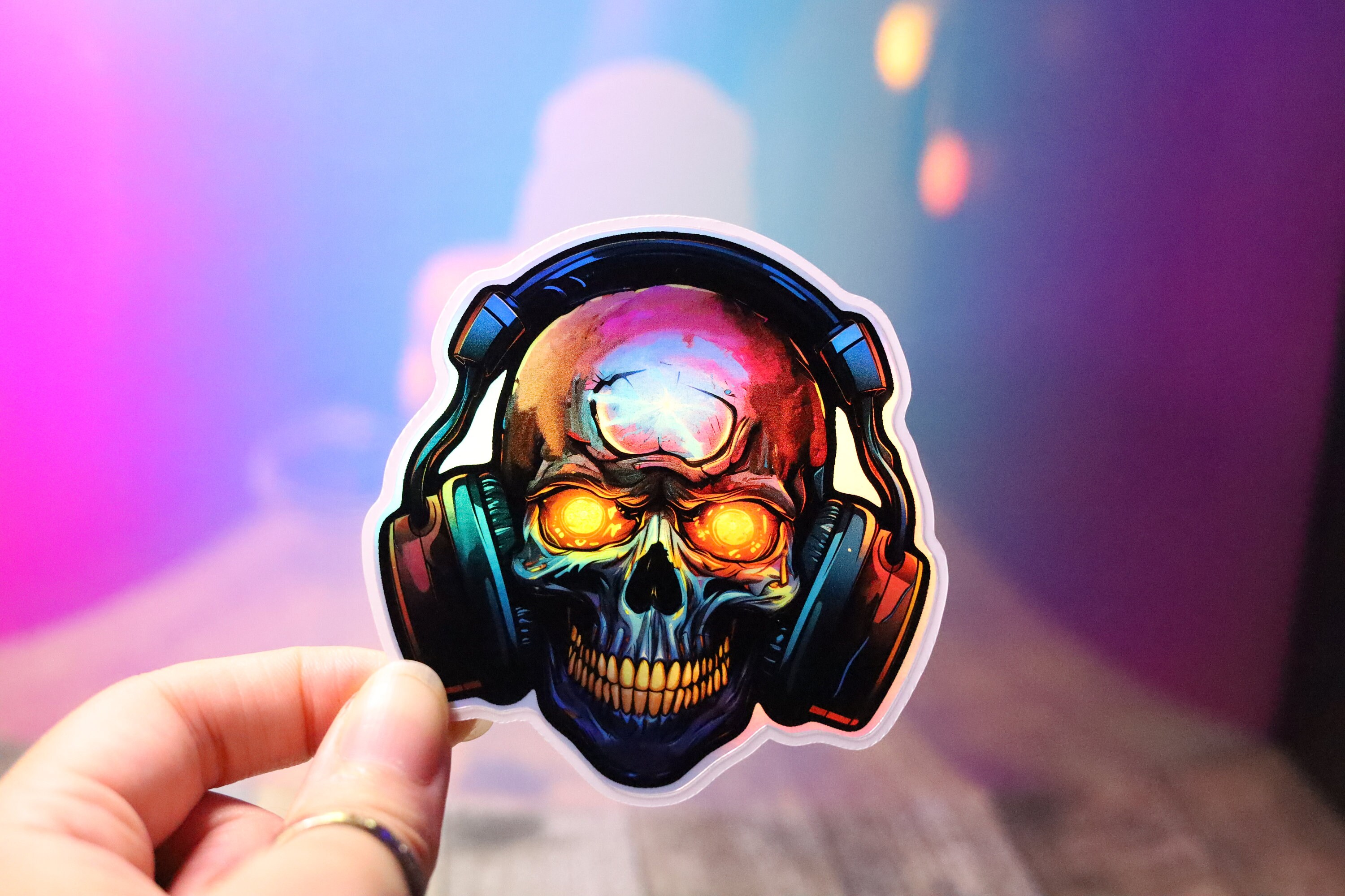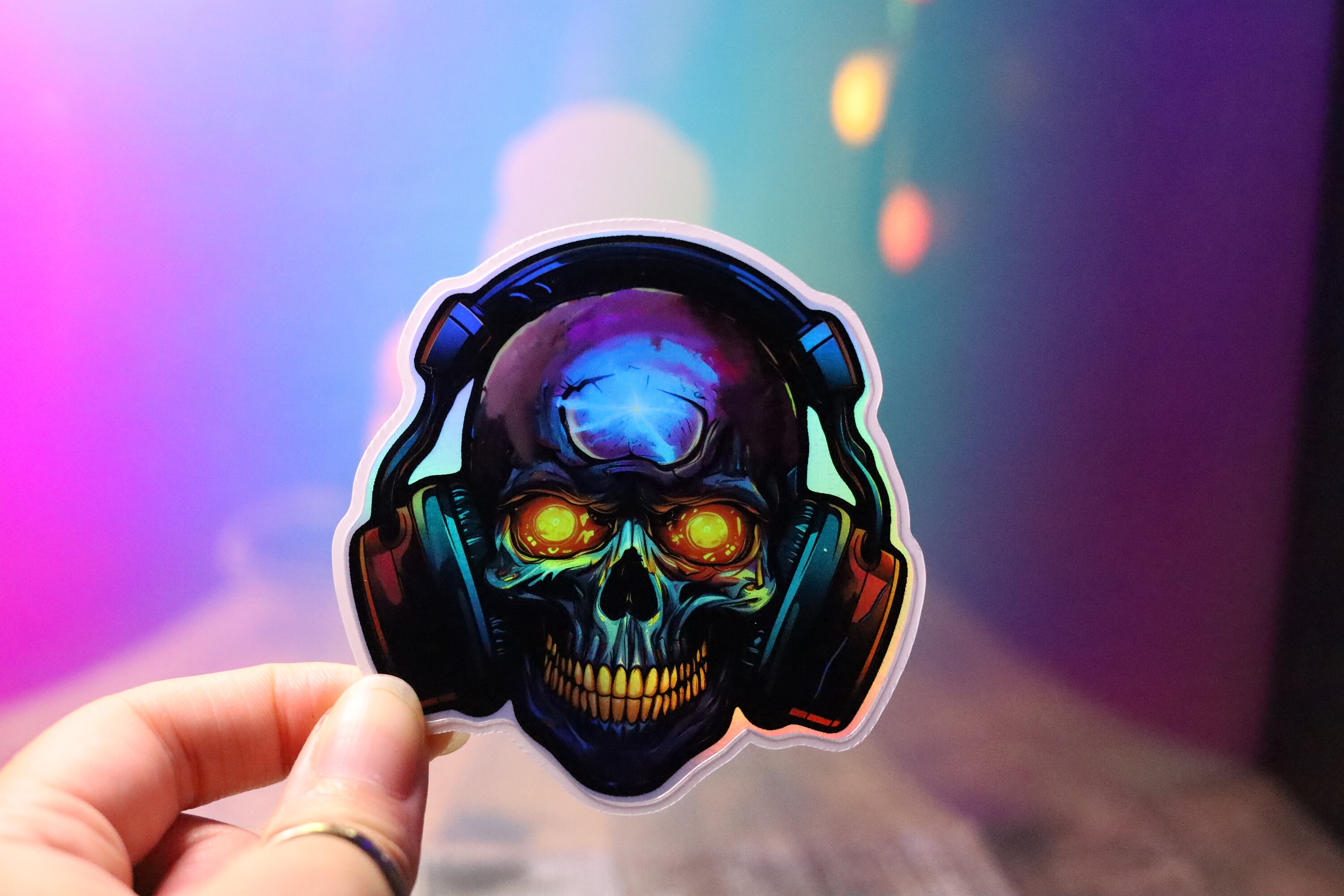 Holo Headphone Skull Sticker Holographic Scary Halloween Decal Shiny ...
