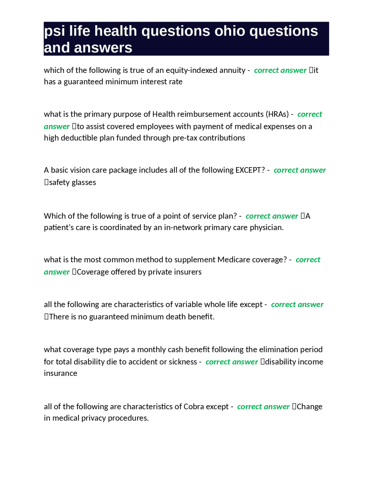 Health insurance exam questions with answers () - Health Care - Stuvia US