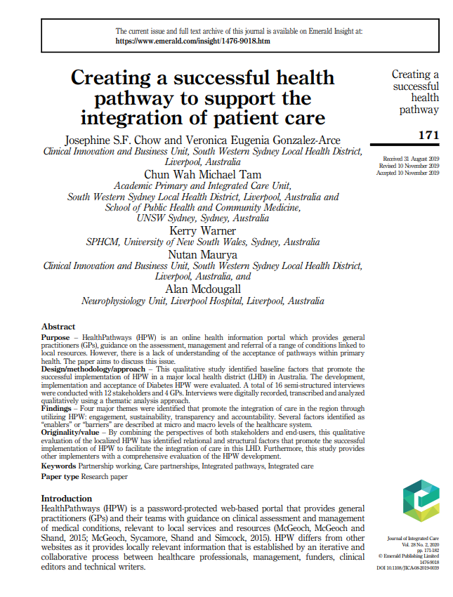Clinical safety assessment of the HealthPathways Health IT system | NECS